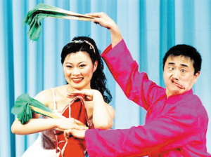 作為趙本山弟子中唯一一個從小學(xué)習(xí)二人轉(zhuǎn)的專業(yè)演員,閆光明不僅嗓子好、武功好,戲路也寬,在“首屆趙本山杯二人轉(zhuǎn)大獎賽”中曾獲表演銀獎。閆光明非?炭,雖然年齡不小了,但現(xiàn)在還是遼寧大學(xué)本山藝術(shù)學(xué)院民族藝術(shù)表演專業(yè)的大四學(xué)生。去年的全國大學(xué)生藝術(shù)節(jié)上,閆光明和妻子趙海燕以一段新編二人轉(zhuǎn)《梁山伯與祝英臺》獲得一等獎。能有今天的成績,閆光明自己也“沒想到”:“我生在二人轉(zhuǎn)世家,能有今天的成績說明這么多年的努力沒白費。”他也不忘感謝師傅趙本山,“師傅讓二人轉(zhuǎn)越來越紅火,我得繼續(xù)努力,把我熱愛的民間藝術(shù)發(fā)揚光大!蔽枧_上擅長模仿趙本山的閆光明說,“我們對天津觀眾很熟悉,因為天津有劉老根大舞臺,我認(rèn)識了很多天津朋友。這次來天津演出,希望大家一樣支持我。”