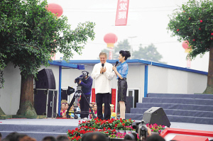前天上午,為了讓更多的災(zāi)區(qū)人民以及援建志愿者看到演出,“心連心”藝術(shù)團專門派出兩支小分隊赴德陽東汽新址以及北川擂鼓鎮(zhèn)舉行分會場表演,而昨天上午,主會場的演出則在綿竹上演,上萬觀眾觀看了演出。而央視著名主持人趙忠祥、畢福劍、徐俐、韓喬生、李瑞英、王小丫、鞠萍、馬東、朱迅等名嘴擔(dān)綱主持并反串了精彩節(jié)目。孫悅、韓磊、湯燦、張邁、陳小濤等近百位明星為災(zāi)區(qū)群眾獻藝。這樣的陣容的確如之前報道的一樣,“超過春晚”。許多災(zāi)區(qū)群眾感動地說:“央視心連心藝術(shù)團,在地震周年到災(zāi)區(qū)演出,確實把溫暖送到了我們心里,讓我們對重建家園更有信心”。