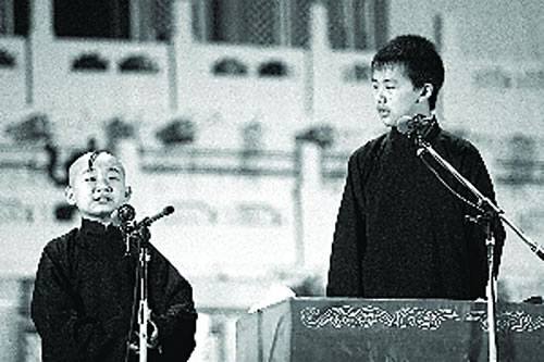 上座率100%,過(guò)道里都站滿(mǎn)觀(guān)眾,這種熱鬧的景象不禁讓人想起了著名的相聲段子《賣(mài)掛票》。昨晚,郭德綱從藝二十周年演出“相聲來(lái)了,這些年我們一直在努力”在人民大會(huì)堂揭幕,郭德綱和于謙作為現(xiàn)場(chǎng)的主角,一共獻(xiàn)上了《捧論逗》、《揭瓦》、《學(xué)電臺(tái)》、《西征夢(mèng)》4個(gè)段子。有趣的一幕發(fā)生在開(kāi)場(chǎng),郭德綱的兒子郭麒麟率先出場(chǎng),和郭德綱義子陶陽(yáng)表演了傳統(tǒng)段子《學(xué)雜唱》,小小年紀(jì)顯出不俗的天賦。此外何云偉、李菁、曹云金、高峰等德云社演員,也分別獻(xiàn)上拿手的段子為郭德綱的“二十年”助興。