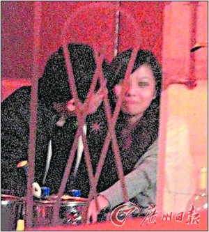 5月8日晚上9時,呂方帶領(lǐng)三名男友人,往灣仔區(qū)一間只招待熟客的高級卡拉OK消遣,眾人來到VIP房,10分鐘后兩名年輕貌美,年約20歲的少女入內(nèi),呂方對一名眼睛大大下巴尖尖,笑容極甜、貌似蔡少芬的小姐特別喜歡,兩人邊唱歌邊喝酒,呂方還興奮地叫了一支2000元的威士忌跟小姐慢慢喝。酒過三巡,呂方與美女愈坐愈近,更唱情歌討好美女,又不時跟女方耳語(見右圖)?窆嗤考、香檳及啤酒后,跟小姐愈玩愈癲的呂方,竟突然抱起小姐又?jǐn)堄钟H,難得小姐非常樂意,任他熊抱兼吻面,呂方更蒙起雙眼,陶醉得久久不能張開。