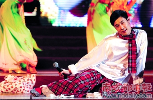 前天晚上(11日),中山紀念堂人滿為患。臺上賣力地演,臺下賣力地笑,笑聲持續(xù)了兩個多小時———這就是小沈陽的魅力。被稱為“娛樂至死”的小沈陽,偕同趙家班“笑轉(zhuǎn)羊城廣州演笑會”著著實實在南方燒起了來自北方的一把火。本報記者原本設(shè)想記錄一下全場笑點,后來頹然放棄,因為笑聲太多,實在數(shù)不勝數(shù)。小沈陽來之前,很多人擔心語言和文化差異讓二人轉(zhuǎn)的笑料在廣州舞臺上抖空,不過小沈陽演出前就表示很有信心“盡量少說方言,東北味太濃的少帶點。”