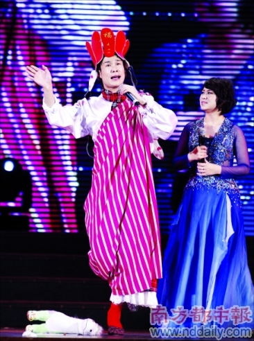 “男主角”小沈陽一身跑偏的蘇格蘭裙上場,瞇瞇一笑就贏得了最熱烈的掌聲。上來一句著實不怎么地道的粵語問候“大家好”,很多人硬是沒聽出來他在說什么。依然是調(diào)侃中國足球,依然是唱《大海》、《我是小沈陽》,依然是《大話西游》的段子,依然是把鞋踢上了“房梁”,依然是抱著小花包啃蘋果———都是些網(wǎng)上流傳的段子,但絲毫不影響臺下觀眾興高采烈加捧腹大笑,連小沈陽自己都說現(xiàn)場看就是不一樣。很多人印象最深刻的是廣州也出了個上帝,小沈陽說日本球迷見到上帝嘰里呱啦說了一堆日語:“上帝一個大嘴巴子扇過去:‘說點中國話!’上帝是廣州人……”而當(dāng)小沈陽扮演的唐僧拉著迷你版玩具白龍馬上臺時,他如此解釋白龍馬的小個頭:“喝三鹿喝的,喝三鹿奶粉,后媽的選擇!”