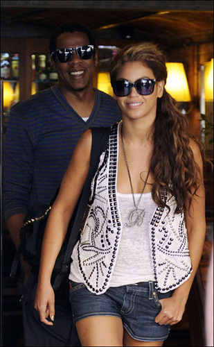5月21日和老公外出吃飯的碧昂斯身穿無袖的白色低胸背心,胸前配了長款的HIP HOP項鏈,外面搭配了現(xiàn)在最火爆的背心,上面鑲嵌著鉚釘,下身則是超短的牛仔熱褲,腳上穿了黑色的進化版角斗士超高跟涼鞋,顯得雙腿修長,整個人也瘦了很多,實在是漂亮。