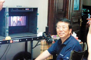 在和司徒雷登的對話中,王學(xué)圻扮演李宗仁身著國民黨軍裝,同時(shí)還戴上了墨鏡。王學(xué)圻告訴記者:“因?yàn)槲以谏虾E摹妒聡恰,里面的角色是光頭的,剃頭之后為了不穿幫,拍攝這部戲只能戴帽子再戴墨鏡,分散一下注意力!