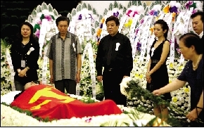 羅京的靈柩上覆蓋著黨旗,被抬入殯儀館的途中,人群中不時(shí)有人輕聲送別,“羅京一路走好”“羅京我愛(ài)你”,聽(tīng)了讓人動(dòng)容。