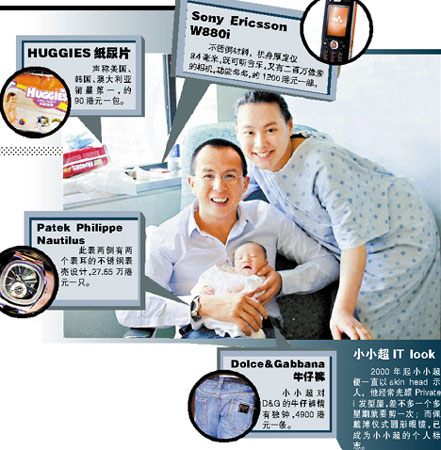 爸爸小小超對愛兒甚為緊張,特派五名保鏢貼身保護(hù)他們母子的人身安全。另外,還有四名全職保姆照顧BB,一名私家看護(hù),為母子兩人監(jiān)察身體狀況,組成龐大的育嬰團(tuán)。