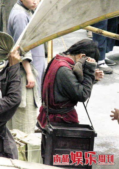 這是李宇春第一次拍電影,還碰到這么多的明星大腕、前輩高人,說(shuō)沒(méi)壓力也不可能。片場(chǎng)休息,李宇春很少笑,總是坐在黃包車?yán)镆粋(gè)人孤零零地想問(wèn)題。導(dǎo)演一喊開(kāi)機(jī),不管有戲沒(méi)戲,她都會(huì)站到路邊仔細(xì)看。沒(méi)想到路邊也不安全,一陣邪風(fēng)吹倒一個(gè)雨棚,棚倒桿折,一下子就砸到李宇春的頭上。好容易從雨棚下掙扎出來(lái),腦袋上不免起了個(gè)“包”,嚇壞了周圍的助理們,圍上去揉了半天,所幸并無(wú)大事。李宇春揉了揉腦袋,倒露出了一絲輕松的笑。記者 秦耀輝