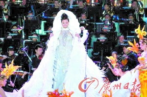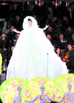 一向給人端莊印象的宋祖英,此次在演出中也換上了六套華服,每一套都可以用“驚艷”來形容。這幾套禮服將中國元素運用得淋漓盡致,造型師還罕見地在頭飾上做了不少變化,為她增添了不少活潑之氣。據(jù)悉,這些服裝是中國、意大利、法國、日本等國際頂級設計師聯(lián)合制作的。