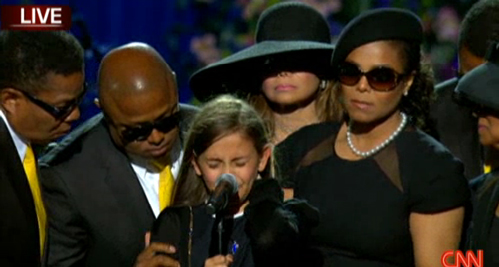 中新網(wǎng)7月8日電 CNN消息,邁克爾.杰克遜在洛杉磯的公眾追思會(huì)以女兒簡(jiǎn)短卻感人的致辭結(jié)束,在追思會(huì)最后杰克遜的女兒上臺(tái)表達(dá)了對(duì)父親的感情。
