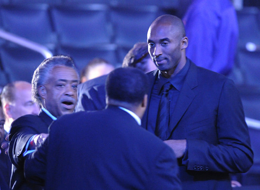 引人注目的美國籃球明星科比和魔術(shù)師約翰遜一同上臺致辭?票然貞浟撕徒芸诉d從相識到變?yōu)楹门笥训姆N種難忘經(jīng)歷和美好時光。“杰克遜的人生是與眾不同的,在臺上和臺下的他一樣精彩。杰克遜將永遠(yuǎn)與我們同在。 ”