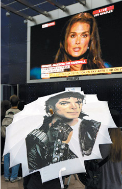 中新網(wǎng)7月9日電 在昨天凌晨舉行的邁克爾杰.克遜公眾告別式上,波姬.小絲感性致詞,令無數(shù)觀眾為之動容,外界都知道她曾與杰克遜交往,但最近她才在受訪時(shí)透露曾數(shù)度拒絕對方求婚。而杰克遜最崇拜的黛安娜.蘿絲缺席告別式,僅發(fā)表聲明表示自己的心已至?xí)䦂,假使杰克遜一家需要,自己會義不容辭照料杰克遜的孩子。