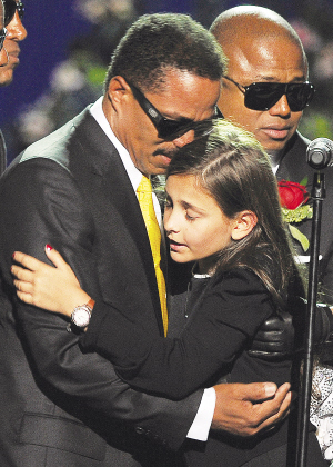 靈柩運送出場之際的配樂是邁克爾銷量最高的單曲《鏡中人》——只有配樂,沒有人聲。這首歌的主題是人要經(jīng)常對鏡自省,其中反復(fù)出現(xiàn)的歌詞“Make that change”(作出改變)就是美國歷史上第一個黑人總統(tǒng),也就是現(xiàn)任總統(tǒng)奧巴馬的選舉口號。記者 朱光