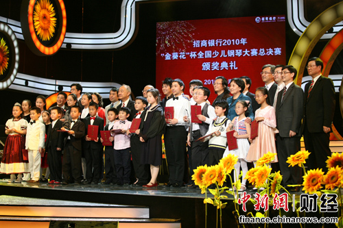 招商銀行行長馬蔚華介紹,招商銀行一直致力于對高雅文化的建設(shè)、傾注于對音樂事業(yè)的支持!敖鹂ā北珖賰轰撉俅筚愂钦猩蹄y行推出的一項特色賽事,其宗旨在于更好地滿足招商銀行“金葵花”客戶在專業(yè)金融服務之外的多樣化需求,為其搭建子女教育的平臺,關(guān)注客戶家庭及子女成長。希望通過賽事的組織,為一批熱愛鋼琴藝術(shù)的少兒,提供同臺競技和交流的平臺,培養(yǎng)他們的藝術(shù)修養(yǎng),開闊人生視野。同時,號召全社會對培養(yǎng)少年兒童的藝術(shù)素養(yǎng)、身心健康成長給予更多的關(guān)注。