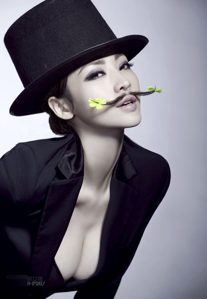 世界杯交戰(zhàn)正酣,光線傳媒當(dāng)家花旦、最性感女主播柳巖,粘上八字胡、戴上黑禮帽,瞬間轉(zhuǎn)型反串男生,戲仿西班牙藝術(shù)大師達(dá)利,為黃健翔主理的體育雜志《最體育》拍攝一套為西班牙隊(duì)助威的寫真,為在小組賽中出師不利的西班牙隊(duì)加油助威。十足酷感戲謔表情的柳巖,抽起煙斗、懷抱模特美腿抑或?qū)︾R剪胡子,傳神演繹一代藝術(shù)大師達(dá)利的戲夢人生,獻(xiàn)上“雌雄同體”的表演。