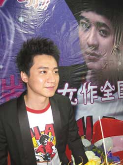 活動開場,推出《走啊,走啊,心動》的圖書公司負責人首先發(fā)言,稱贊王弢沒有躺在以往的光環(huán)下停滯不前;說他的文字駕馭能力和故事架構(gòu)能力不在當今一流作家之下……聽到這些話,王弢感覺不太好意思,或者低頭偷笑,或者與黃磊對笑。黃磊則贈送給王弢《夜半歌聲》手稿,他說雖然現(xiàn)在不教王弢了,但希望仍能給他一些建議或者影響。昨天劉璇并未出席,王弢先是開玩笑說,劉璇是丑媳婦不敢見大家,但接著解釋說,確實因為有工作脫不開身。