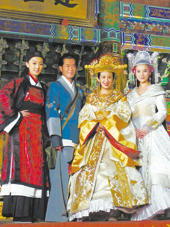 昨天,由王晶導演,匯集了古天樂、大S、吳君如、羅家英、林子聰、李健仁等笑星的古裝喜劇《大內(nèi)密探零零狗》對媒體開放橫店片場。頭戴黃金冠,身披黃金衣,首度以戲裝現(xiàn)身的吳君如的造型像極了《滿城盡帶黃金甲》里的鞏俐,山寨味十足。