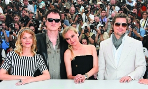 昆汀·塔倫蒂諾的新作《無良雜種》昨日在戛納電影節(jié)上首映,昆汀帶著布拉德·皮特、戴安·克魯格、梅蘭尼·勞倫特亮相。雖然安吉麗娜·茱莉與皮特一起到法國,但卻沒有與皮特一起出場見媒體。至于在片中出演戲院老板娘一角的張曼玉依舊沒有亮相。從昆汀帶著劇組演員為《名利場》等雜志拍攝寫真開始,張曼玉就一直缺席《無良雜種》的相關(guān)宣傳活動。據(jù)昨日前方看過該片首映場的記者透露,原來《無良雜種》中張曼玉一點戲份也沒有,戲院老板娘由一位法國女孩出演。奇怪的是,在該片的場刊名單中,確實寫著“張曼玉主演”字樣,而IMDB網(wǎng)上,張曼玉的大名也在演員表中。為何張曼玉會只留名字不見戲份,目前還不知原因。不過,看片人士透露,戲院老板娘如果讓張曼玉來演,可能劇情會比較突兀,因為該角色小時候從納粹手上逃走,后來她又遇到了當時殺她全家的納粹軍官才萌生了舍己制造暗殺行動的念頭,也就是說這個角色對納粹既有國仇也有家恨,這一角色由張曼玉出演,顯然沒有法國人演繹來得自然了。