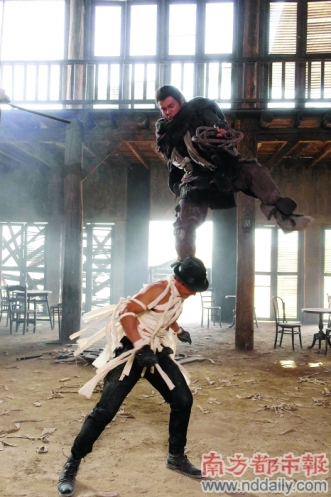 從劇照上看,周董的打扮神似他在《牛仔很忙》mv里的造型,只是多了一條巨型圍巾,還有一條皮鞭。這條皮鞭先前曝光的劇照里并沒出現(xiàn)過,顯然是進(jìn)入武戲部分后周董拿出的“家伙”。圖中周杰倫和好友劉畊宏演的繃帶男正進(jìn)行一場(chǎng)激烈的打斗,而繃帶男的武器竟是繃帶,他上身繃帶齊發(fā),仿佛白發(fā)魔女再世。另外,據(jù)悉,《刺陵》鎖定圣誕檔期,將于12月中旬在全球同步發(fā)行。