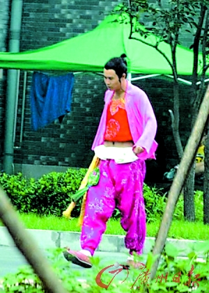 當日,小沈陽在幾位工作人員的陪同下走出攝影棚。一身“紅妝” 的他,里面竟穿了一件露出肚臍的大紅肚兜。這身裝扮,看起來更像是表演東北二人轉(zhuǎn)!看來,在劇中負責搞笑的小沈陽,穿著打扮也跟以前的老本行相似,演起來應(yīng)該也會更加得心應(yīng)手。