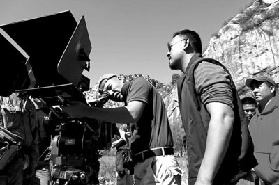 《讓子彈飛》雖然走的是西部片風(fēng)格,姜文卻把第一個(gè)外景地選擇在毗鄰北京的北方山區(qū),從北京城出發(fā)要走三個(gè)小時(shí)的山路,只有一些資深驢友才知道這處尚未完全開發(fā)的自然景區(qū)。因?yàn)檠悠陂_拍,外景地趕上了最美的秋景,遍野蒼翠已逐漸變成紅黃相間,整個(gè)山景更顯夢幻色彩。因?yàn)榍锞俺掷m(xù)時(shí)間有限,整個(gè)攝制組國慶期間沒有休息一天,抓緊時(shí)間趕工拍攝。原本多變的山區(qū)氣候,竟然連續(xù)十天放晴,整個(gè)劇組的拍攝計(jì)劃也得以順利完成。 “慢工出細(xì)活”的姜文,此次有望提前結(jié)束第一個(gè)外景地的拍攝。記者 蔡穎