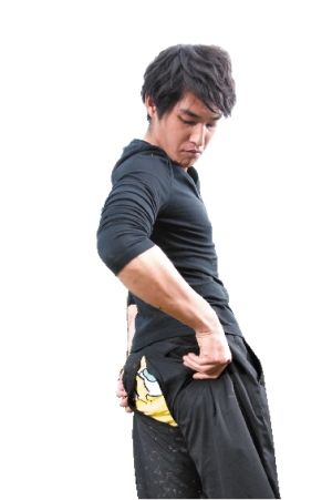 藍(lán)正龍?jiān)趧≈酗椦葜麅尚宰骷蚁暮徒,因(yàn)榇篝[電影首映會(huì),被判到幼兒園服158個(gè)小時(shí)的勞動(dòng)役。為了幫小朋友撿布偶,他爬到樹上,沒想到不慎失足,樹枝勾住褲子,狼狽不堪地倒栽蔥掛在樹上(右上圖)。這場(chǎng)戲雖然只有短短的幾分鐘,卻足足拍了9個(gè)小時(shí)。藍(lán)正龍表示,以前拍廣告時(shí)曾有吊鋼絲的經(jīng)驗(yàn),但倒吊卻是第一次,“倒吊的時(shí)候,頭有點(diǎn)昏昏的,而且讓我真的體會(huì)到什么是眼冒金星。”但最讓他難為情的是,“得在鏡頭面前露出海綿寶寶內(nèi)褲,讓我有點(diǎn)小尷尬!