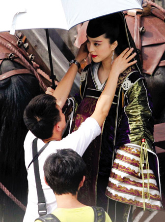 陳凱歌新片《趙氏孤兒》正在寧波趕拍,范冰冰的孕婦造型日前浮出水面。當(dāng)天正在拍攝一場(chǎng)趙朔攜莊姬進(jìn)城見晉王的戲份。范冰冰扮演的莊姬華服綾羅地端坐在馬車內(nèi),黑紗遮面,被趙文卓緊緊牽著。莊姬是“趙氏孤兒”趙武的生母,也是片中分量最重的女性角色。導(dǎo)演一喊卡,立即有三四個(gè)助手沖上去攙扶范冰冰下車,范冰冰以腹部高聳的造型亮相。雖然范冰冰早前在《蘋果》中也扮演過孕婦角色,不過像這樣夸張的“十月臨盆”的大肚造型還是比較罕見的。(辛文)