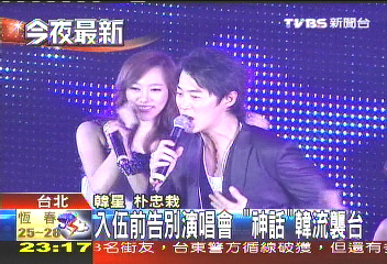 據(jù)臺灣TVBS報道,樸忠栽用中文對歌迷喊出:“我愛你!”他當兵前在臺灣的最后一次演唱會,可以說是卯足了勁,就怕一當兵會被歌迷遺忘。
