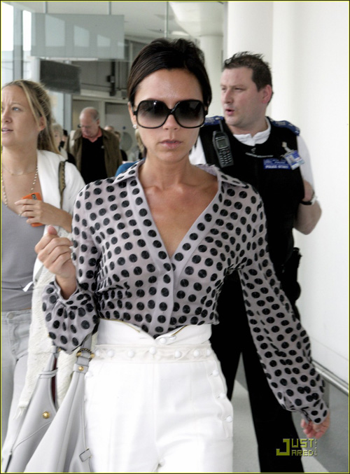 維多利亞·貝克漢姆這位大走貴婦風(fēng)的穿衣典范,最近因?yàn)樵谙奶旖K于脫去了太過(guò)奢華的衣服,換上了清涼的裝扮,昨日(7月21日)現(xiàn)身,上身選擇了灰色底色,上面點(diǎn)綴這黑色珍珠圓點(diǎn)的上衣,下身則是選擇了現(xiàn)在最流行的高腰褲,白色的感覺(jué)清爽涼快,雖然整個(gè)人依然是黑面,但是整體來(lái)說(shuō)還是值得效仿的。