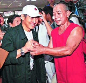 李連杰8月13日起帶著物資深入臺灣災(zāi)區(qū),為備受超級臺風莫拉克摧殘的臺灣中南部災(zāi)民及義工打氣。前日他繼續(xù)探訪災(zāi)區(qū),有災(zāi)民向他哭訴:“我家全沒了!”李連杰趕緊握住他的手給予安慰,場面感人。不過也有輕松的時候,李連杰所到之處,大批災(zāi)民和義工均蜂擁上前看熱鬧,許多年輕女義工更是尖叫著將他團團圍住,李連杰只能笑說:“這么圍著,我怎么探望災(zāi)民啊!