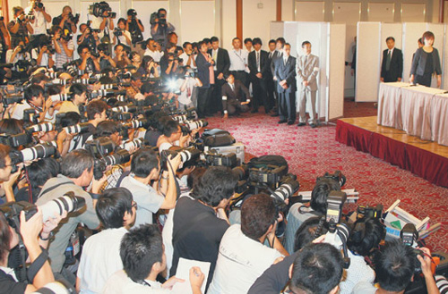 中新網9月18日電 酒井法子在東京千代田飯店舉行的謝罪記者會,日本多家媒體都是全程直播,不少日本記者更是直言指出,她的架勢遠勝過昨日上任的新首相鳩山由紀夫。