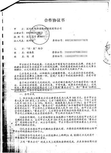 事發(fā)后,“羽·泉”曾在北京以侵權(quán)為由起訴過該公司,不過由于種種原因自行撤訴了,近日“羽·泉”又委托律師向深圳市寶安區(qū)人民法院對中科諾提起訴訟,要求確認雙方簽訂的合作協(xié)議書已經(jīng)解除,同時判令該公司向自己賠償違約損失人民幣120萬元。