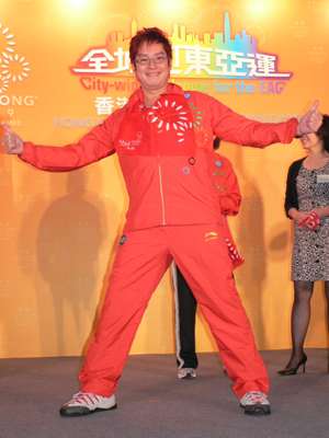 中新網(wǎng)12月1日電 譚詠麟昨日以一身紅裝及染紅發(fā)出席迎接東亞運動會的活動,譚詠麟不僅在活動中透露兒子曉風愛打籃球外,還對時下的娛樂熱點進行點評,更自曝曾遭女歌迷“胸襲”。