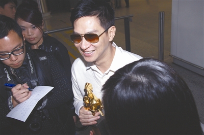 在臺(tái)灣金馬獎(jiǎng)奪得影帝的張家輝前日凱旋返港,張家輝表示,出發(fā)去臺(tái)灣前以為自己曾獲得過(guò)影帝,不會(huì)再緊張,但到頒獎(jiǎng)禮開始時(shí),心跳便開始加速,好似心臟病發(fā)一樣。他還透露,得獎(jiǎng)后即收到好友劉青云、黃秋生與吳君如的祝賀,但收到女兒的投訴。他表示,太太關(guān)詠荷收到他封帝消息后,即尖叫起來(lái),女兒投訴給母親吵醒了
