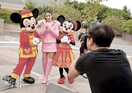 Kelly變身迷人Pink Lady跟米奇米妮拍攝新春廣告