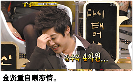 韓國(guó)人氣組合SS501成員金賢重,在前晚播出的電視節(jié)目中自曝曾與一名女藝人交往,這一話題迅速成為人們關(guān)注的焦點(diǎn)。