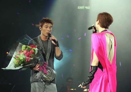 鄭秀文與舊愛許志安關(guān)系微妙,合唱時(shí),鄭秀文刻意將“是我愛你太多”的歌詞改為“是我愛他太多”,到最后唱到“其實(shí)你心里有沒有我”這一句時(shí),鄭秀文更表現(xiàn)出一臉害羞,不敢正面看安仔。在臺(tái)上安仔解釋此次送花,是因?yàn)樗词讏鰰r(shí),發(fā)現(xiàn)鄭秀文有一套桃紅色的衣服,所以特別買束花來襯她。鄭秀文聞言開心笑說:“多謝你啊,夠朋友哈!
