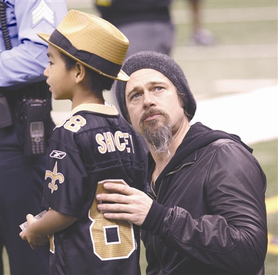 美國當地時間1月16日,布拉德·皮特帶著養(yǎng)子馬多克斯和導演斯派克·李現(xiàn)身美式橄欖球賽場,在比賽間隙,皮特利用明星身份帶著兒子與偶像隊員來了個親密接觸,滿足了球迷兒子的小心愿。