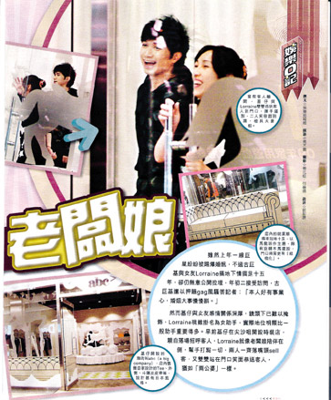 最近古巨基在尖沙咀美麗華開(kāi)設(shè)自家品牌時(shí)裝店,獨(dú)資發(fā)展演藝以外的新事業(yè),Lorraine掌管業(yè)務(wù),還親自在店鋪打點(diǎn),一副老板娘模樣。