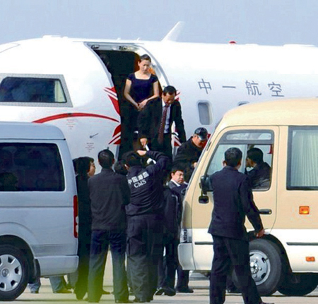 4月23日下午,一架白色飛機降落在舟山普陀山機場,從弦梯上走下來著名笑星趙本山和小沈陽,記者有幸拍到傳說中的“本山”號私人飛機。