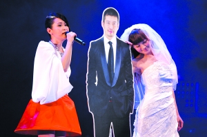 這場(chǎng)2個(gè)多小時(shí)的演唱會(huì),劉若英沒(méi)有邀請(qǐng)任何嘉賓,但是她卻為大家?guī)?lái)了五月天、品冠、吳彥祖、古天樂(lè)等人的、真人大小的紙片人來(lái)為自己伴舞助陣。在她演唱歌曲《夢(mèng)童》時(shí),舞者推著這幾位身穿黑色西裝的帥哥來(lái)到了舞臺(tái)上。原來(lái)奶茶將五月天、品冠等好友的紙人模特搬上了舞臺(tái),同時(shí)她還帶來(lái)了自己“垂涎已久”的吳彥祖紙人模特,還在現(xiàn)場(chǎng)與每個(gè)帥氣的男伴牽手跳舞。