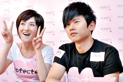 在今年初的某場(chǎng)頒獎(jiǎng)典禮上,謝娜和張杰十指緊扣同臺(tái)亮相,并以男女朋友相稱,這是從“快男”比賽開始便傳出戀情的兩人在經(jīng)歷兩年的地下戀后首度“見光”。此后,兩人便一發(fā)不可收地到處秀恩愛。昨日的“反UV保護(hù)令”發(fā)布現(xiàn)場(chǎng),兩人再度將“秀愛”進(jìn)行到底。謝娜在臺(tái)上嬌嗔地說:“張杰就是我心目中的完美男生,他就是很完美,各方面都很完美!倍鴱埥軇t在臺(tái)上肉麻地宣布:“娜娜是我的女朋友,我不允許我所愛的人受到任何傷害,這個(gè)夏天我要給娜娜最杰出的保護(hù)!痹捯魟偮洌灰娭x娜開始用手輕擦眼睛,以一句“是的,我們會(huì)一直走下去”作為愛的回應(yīng)。
