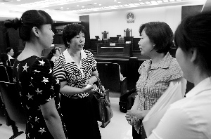 法官隨后只得向旁聽(tīng)人員說(shuō)明情況,旁聽(tīng)人員對(duì)關(guān)之琳一方無(wú)視法律規(guī)定的行為非常不滿。雅鹿集團(tuán)到場(chǎng)的一位顧問(wèn)招呼另一被告好友世界商場(chǎng)的代理人,“撤訴了,可以走了!(如圖)好友世界商場(chǎng)的代理人此時(shí)也不明就里,“他們和解的事,我們都不知道,還準(zhǔn)時(shí)來(lái)參加庭審!狈ü、書(shū)記員及兩被告的代理人,一直苦等關(guān)之琳的代理人來(lái)辦理撤訴手續(xù),但直到11時(shí),該代理人才姍姍來(lái)遲!澳銈兝速M(fèi)訴訟資源,對(duì)你們提出警告!泵鎸(duì)法官的批評(píng),該代理人一言不發(fā)。(首席攝影記者 吳寧/攝)
