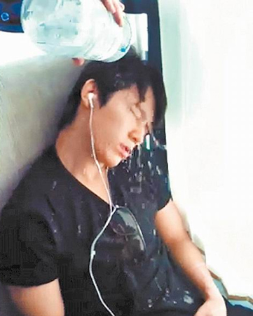 中新網(wǎng)6月28日電 韓國(guó)偶像團(tuán)體Super Junior成員希澈和東海、神童、銀赫約好,誰(shuí)在床以外的地方睡著就要被潑水,結(jié)果在車上睡著的東海第1個(gè)遭殃,希澈倒了一整瓶礦泉水在他頭上,雖然很狼狽,東海仍硬撐:“好涼爽!”