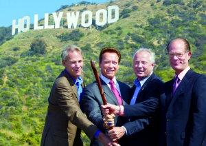 美國(guó)時(shí)間4月26日,加州州長(zhǎng)施瓦辛格專(zhuān)門(mén)在招牌所在的山腳下演講,他說(shuō):“好萊塢招牌是夢(mèng)想、機(jī)遇和希望的符號(hào),它矗立在那里歡迎著一代又一代的夢(mèng)想者、藝術(shù)家,還有奧地利的健美運(yùn)動(dòng)員來(lái)到這里。”他還在講話中感謝了捐助者們,他們包括美國(guó)電影藝術(shù)與科學(xué)學(xué)院、CBS電視臺(tái)、NBC環(huán)球公司、索尼影業(yè)、20世紀(jì)福克斯公司、華納兄弟公司、時(shí)代華納公司、斯皮爾伯格、湯姆·漢克斯夫婦等等。