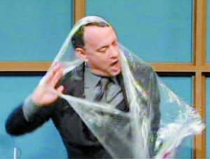 奧斯卡影帝湯姆·漢克斯5月16日在紐約做客《周六夜現(xiàn)場(chǎng)》節(jié)目。在節(jié)目中,湯姆·漢克斯被主持人威爾·法瑞爾惡搞,被套上了一個(gè)超大塑料袋,幾次掙扎后,這位影帝的俏臉都險(xiǎn)些變形,最終還是撕破袋子獲釋。但惡搞只是節(jié)目的一部分,等湯姆·漢克斯平靜之后,他還在節(jié)目中與女星安妮·海瑟薇共同表演薩克斯。其實(shí)上電視,只是漢克斯忙里偷閑的一次放松,近期他的主要任務(wù)是為新片《天使與魔鬼》作宣傳,該片是《達(dá)·芬奇密碼》續(xù)集,在片中他依舊飾演哈佛教授羅伯特·朗頓。