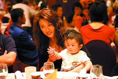 由于晚會當(dāng)天安排了晚宴,近百位明星藝人將晚會現(xiàn)場塞得滿滿當(dāng)當(dāng),加上媒體的攝像機(jī),要在現(xiàn)場走動頗有幾分難度。但坐在主桌的王志文卻頻頻向隔壁桌示意,記者追隨過去,意外發(fā)現(xiàn)了王志文的太太陳堅紅手里抱著一個一歲不到的孩子。經(jīng)證實,這個9個月大的孩子正是兩人的愛情結(jié)晶。與之前相比,孩子長大了不少,一雙小眼睛更是像極了父親王志文。只見小朋友面對記者的鏡頭并不見半點緊張,大有父親般的明星派頭,不僅任由拍攝,還時不時拿起手中的塑料玩具,和媽媽逗趣玩耍。而一頭中長燙發(fā)的陳堅紅依舊年輕漂亮,皮膚白皙,看到記者的鏡頭,陳堅紅也沒有表示抗拒,只是專心地和孩子玩耍。