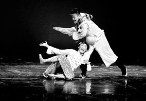 由于開(kāi)篇背景介紹過(guò)多,前三幕戲略顯沉悶,演員努力抖出的包袱只換得稀稀拉拉的笑聲。