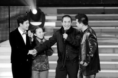 眼看唱主題歌的事要黃了,小沈陽(yáng)和毛毛終于使出最后一個(gè)殺手锏:請(qǐng)出自己的舅姥爺,這舅姥爺并不是大病初愈的趙本山,正是《三槍拍案驚奇》的導(dǎo)演張藝謀。幾乎“絕跡”綜藝類(lèi)節(jié)目,這次也算是為新片獻(xiàn)出了綜藝“處女秀”。至于為什么成了小沈陽(yáng)和毛毛的舅姥爺,張藝謀的解釋是,我和丫蛋的爺爺(指趙本山)是好朋友啊!有了舅姥爺?shù)闹С郑∩蜿?yáng)和毛毛接下來(lái)的表演更賣(mài)力了,他們和《星光大道》的選手李玉剛等,進(jìn)行了一系列的PK,可最后的結(jié)果還是不分伯仲。看著這兄妹倆不停的鬧騰,張藝謀最后發(fā)話了:“小沈陽(yáng),你也別在人家《星光大道》上胡鬧了,就跟我走吧,不看僧面看佛面,看在丫蛋她爺爺?shù)拿嫔希度龢屌陌阁@奇》的主題歌,就讓你唱吧!”