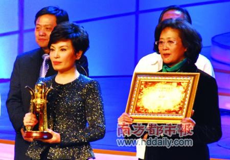 前晚,2009中國播音主持“金話筒獎”頒獎盛典在北京電視臺大劇院隆重舉行。來自全國各地的百余名播音員、主持人歡聚一堂,共同慶祝“金話筒獎”的又一次精彩亮相。在此次評選中,中央電視臺張泉靈、楊銳、董浩等10人獲得電視播音員主持人獎;中央電視臺李修平、張宏民主持的《新聞聯(lián)播》、四川廣播電視集團寧遠主持的《汶川地震特別報道》等10件作品獲得電視播音主持作品獎;中央人民廣播電臺郭靜、梁悅主持的2008年5月12日《汶川緊急救援》(開篇)、寧波人民廣播電臺何謹主持的《一位絕癥母親的奧運夢想》等10件作品獲得廣播播音主持作品獎。此外,已故中央電視臺著名播音員羅京被授予了“金話筒獎”終身成就榮譽,他的同班同學兼同事李瑞英替羅京領取了這項殊榮。