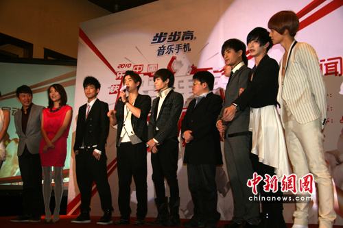 中新網(wǎng)3月31日電(王祎) 今天下午,“2010快樂男聲”在北京宣布正式啟動(dòng),張杰和蘇醒作為往屆快男代表出席了活動(dòng),至上勵(lì)合組合也到場(chǎng)助陣,本屆快男總導(dǎo)演洪濤在介紹賽制時(shí)重點(diǎn)強(qiáng)調(diào)了兩大看點(diǎn)。步步晉級(jí)的賽制在此次快男比賽有所突破,由海選中有潛質(zhì)選手組成的偶像組合“快樂天團(tuán)”將直接晉級(jí)總決賽,空降六強(qiáng)晉級(jí)賽;另一看點(diǎn)就是首開北美、澳大利亞、馬來西亞三大海外報(bào)名點(diǎn)。同時(shí),對(duì)于韓庚出任快男代言人的傳聞,洪濤間接給與了否定,稱并沒有設(shè)立代言人的位置。